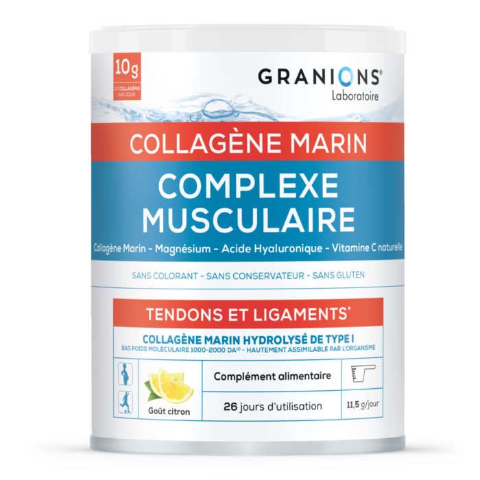 Étirements, torsions des muscles, courbatures et raideurs sont les signes d’une fatigue musculaire qui peut altérer votre bien-être quotidien. Pour aider au bon fonctionnement musculaire et à réduire la fatigue, le Laboratoire des GRANIONS a développé une formule complète à base de Collagène sous forme de poudre.